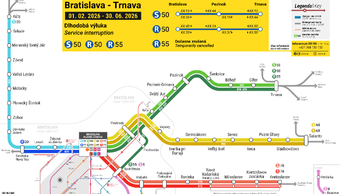 ![]() | VÝLUKA! Bratislava hl. st. - Pezinok - Trnava | Platí od 1.2.2026 | ||