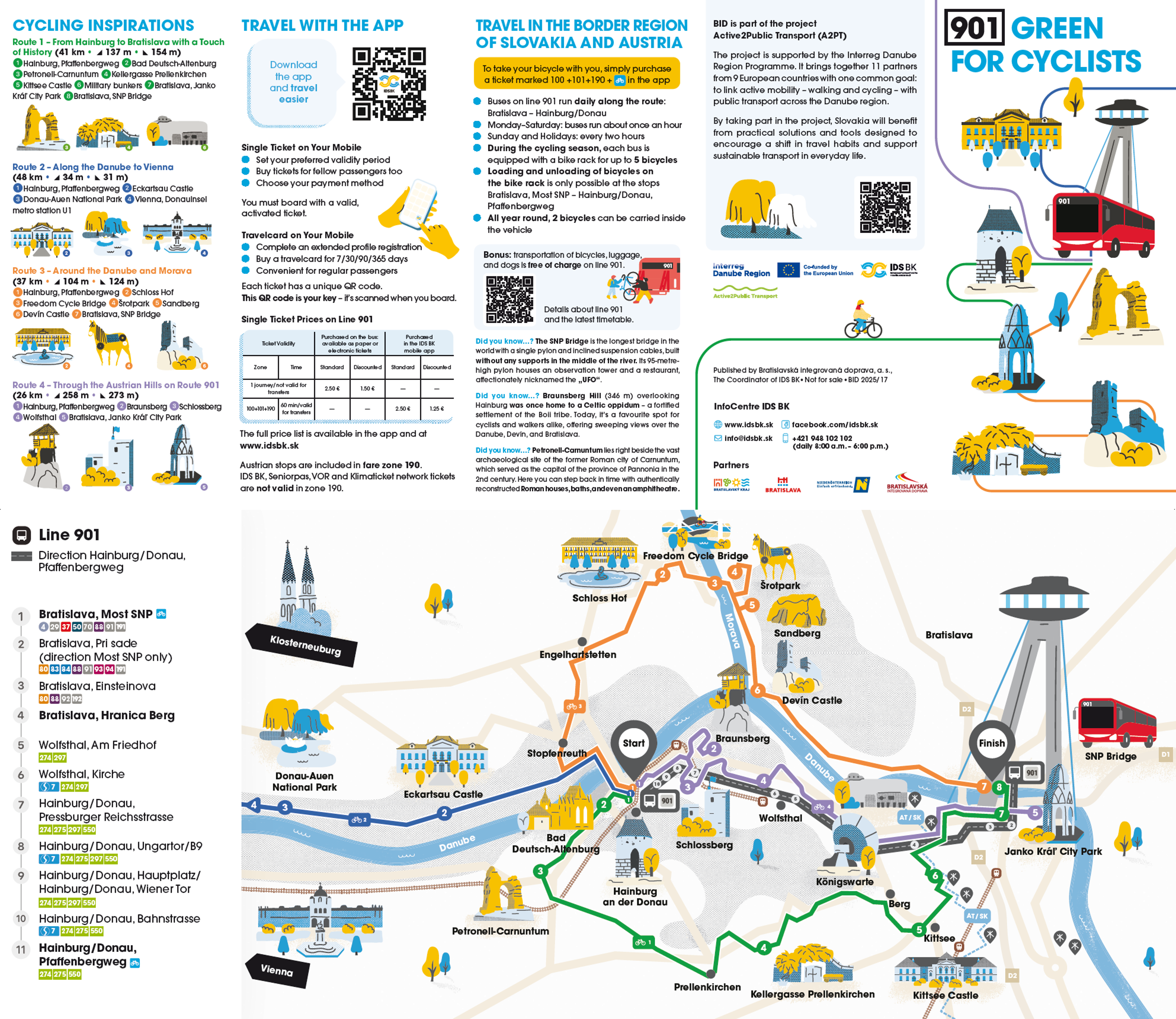 - Buses on line 901 depart from Bratislava, Most SNP, via Einsteinova (in the direction of Bratislava also via stop Pri Sade, near Aupark), then via Wolfsthal to Hainburg an der Donau.